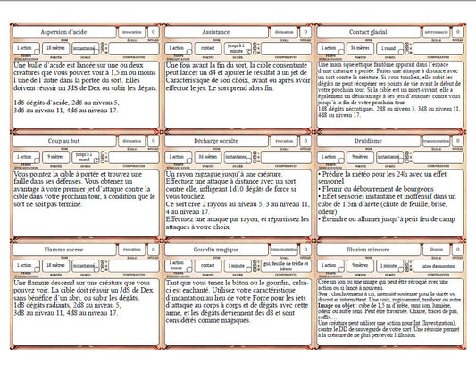 Cartes de sorts de 5e - DRUIDE 0 à 9